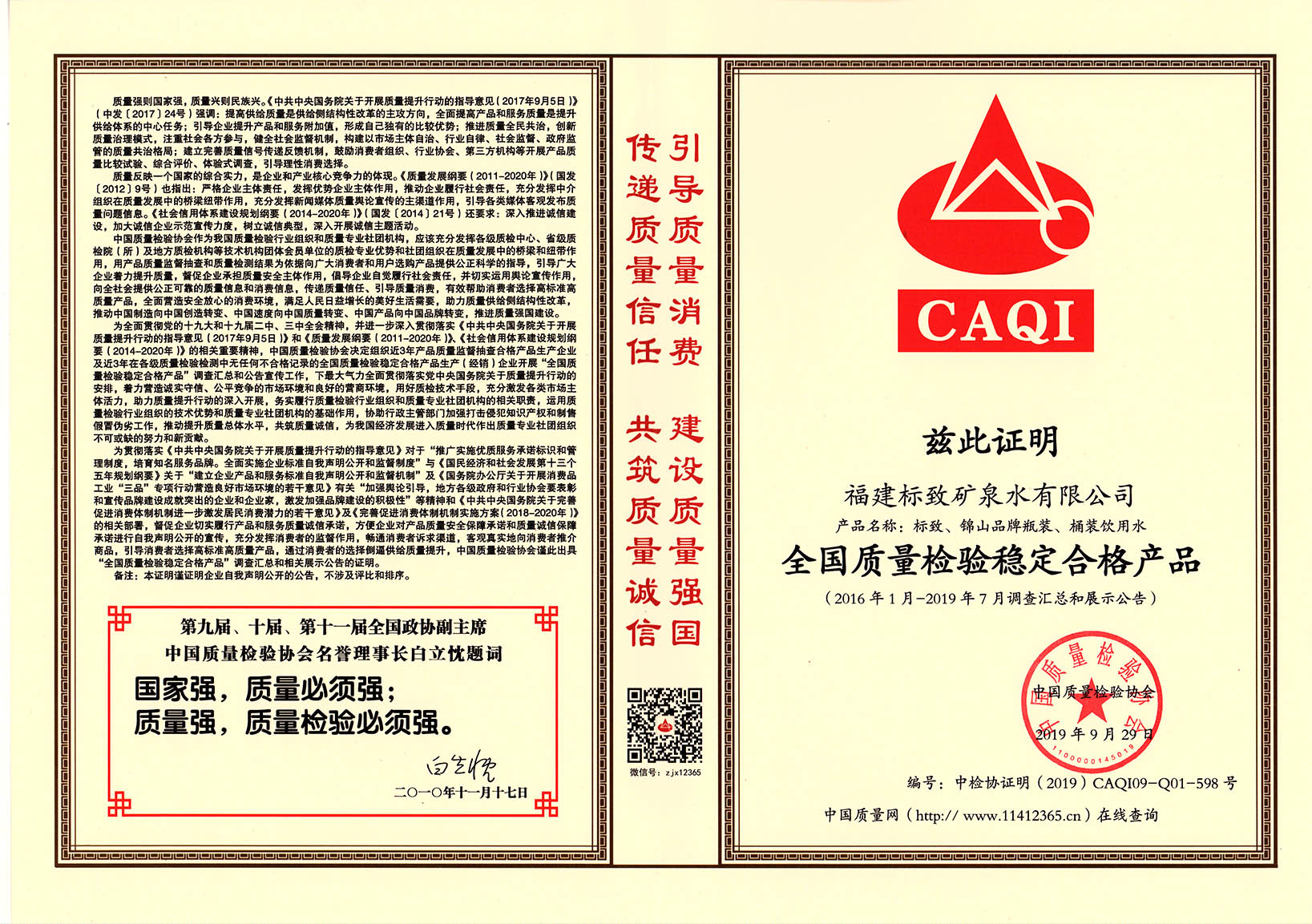 • 2020-03-252019年9月,標致公司榮獲“全國質量檢驗穩定合格產品”稱號